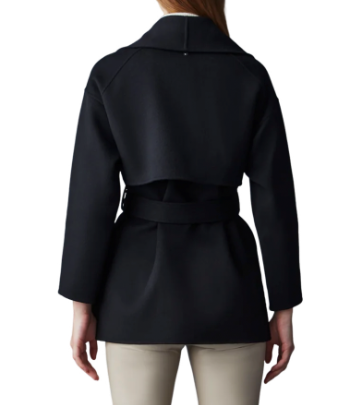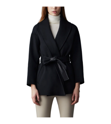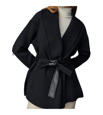 This double-face wool wrap jacket features a robe-inspired silhouette and a chic shawl collar. Expertly handcrafted with a relaxed fit, it’s accented by a sustainable leather and wool sash belt that complements the drop-shoulder tie-front design. Ultra-soft and unlined, it drapes effortlessly for a modern, fluid look. Stylish and versatile, it’s a timeless piece to elevate any outfit.